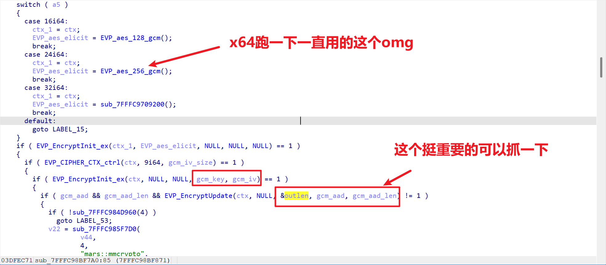 这个算法肯定是借来用的我们翻一下看看大概是怎么个流程,根据这篇文章对称加密算法AES之GCM模式简介及在OpenSSL中使用举例-CSDN博客