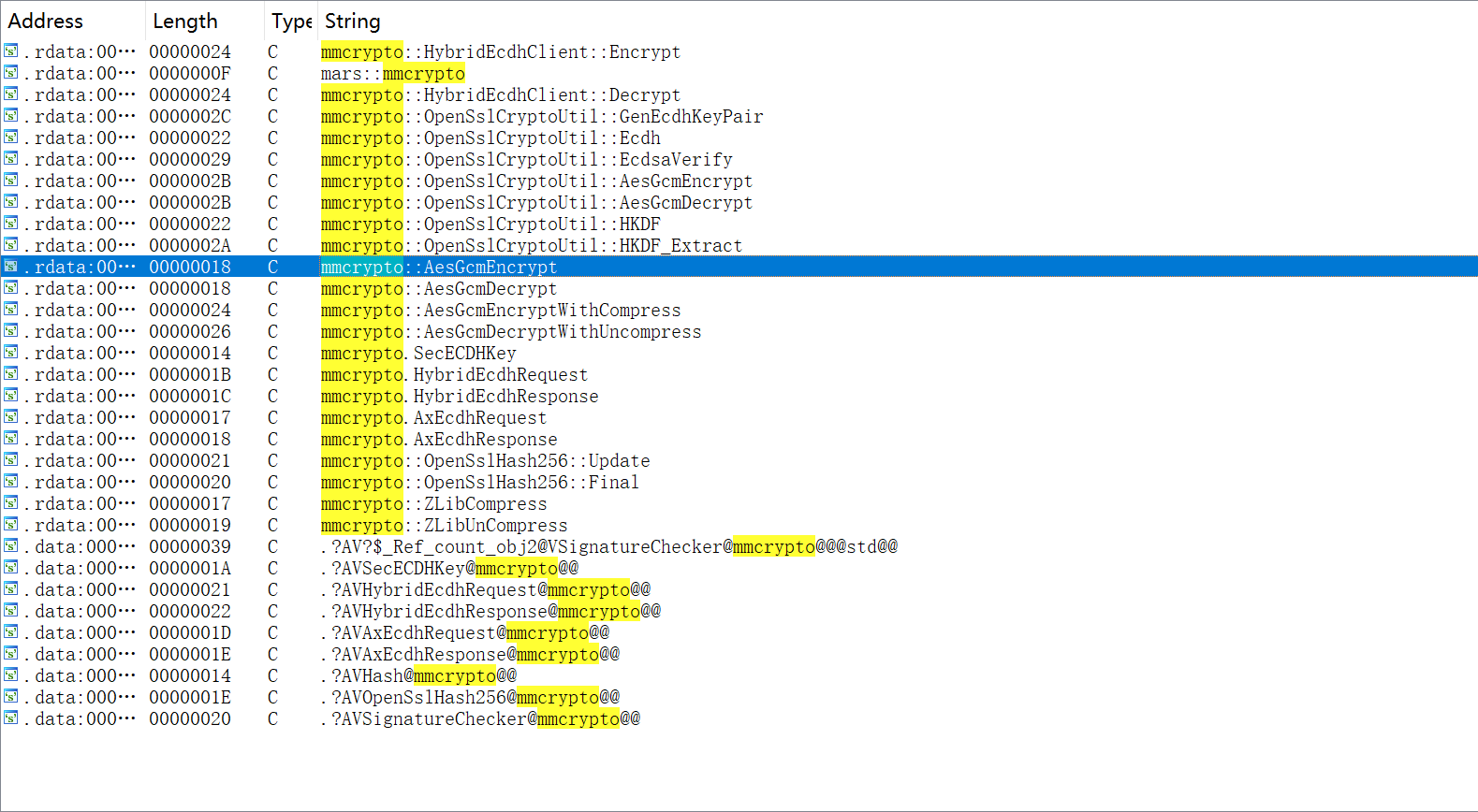 根据官方开源的Tencent/mars: Mars is a cross-platform network component developed by WeChat.,然后通过longlink一路跟过来,到了req2buf,再就找到了发现很多核心算法都有mmcrypto这个字符串hh