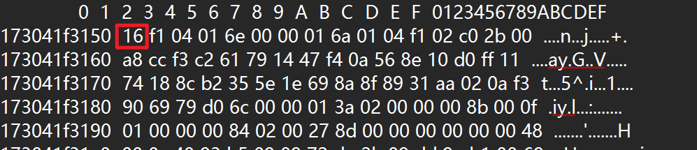 | 16 | F1 04 | 01 6E | ………. |